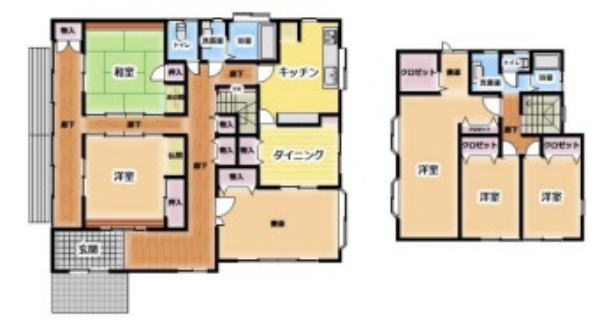 建物は平成4年築 59坪6DK 部屋数多く大家族向きの大型住宅
