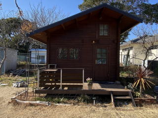 現在シェアハウスで利用中 離れに令和元年築 5坪1SK ログハウス オーナー利用中