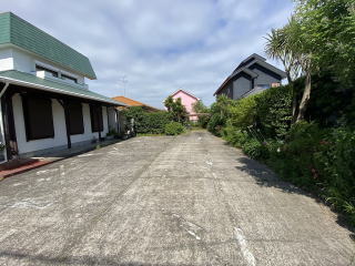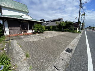 敷地200坪 西側県道の通りに面した整形地 通り側に広い駐車場スペース 奥に庭あり