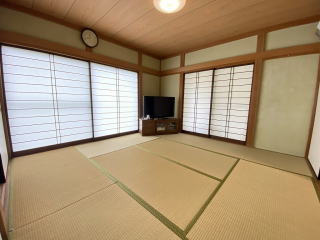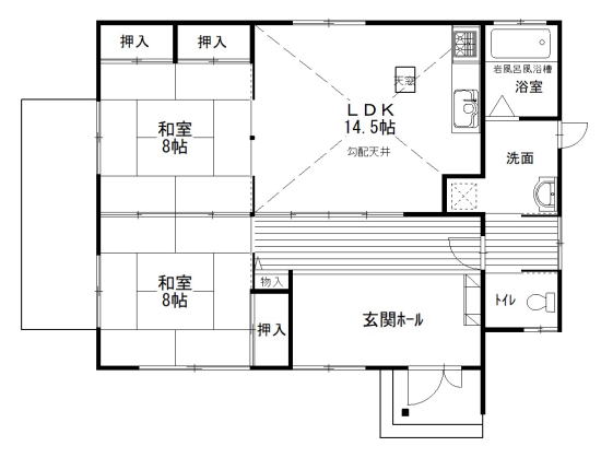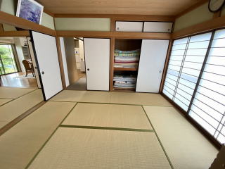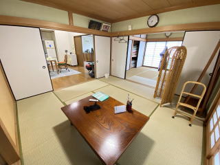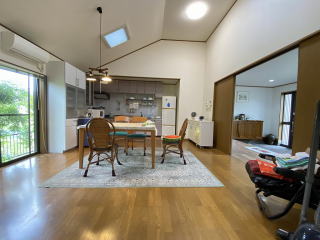 8帖×8帖和室続き間 吹抜勾配天井の14.5帖LDK マリンレジャーの別荘に最適です |