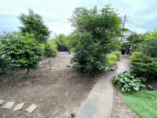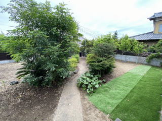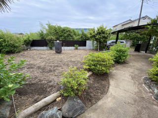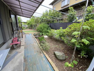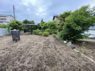 駐車場2台分 東側に菜園可能な広いスペース 緑豊かで落ち着いた庭です