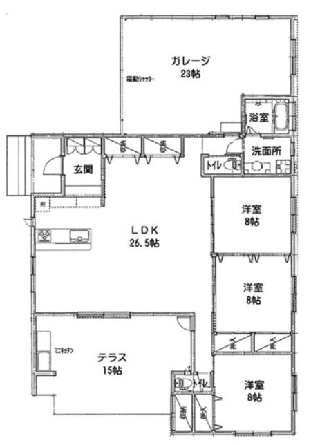 建物は新築平家住宅 49坪3LDK+ガレージ 太陽光発電付オール電化 26帖LDK  |