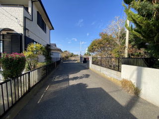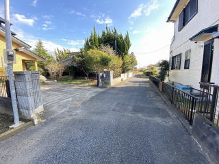 緑のある落ち着いた庭です   南側接道道路と周囲の街並み