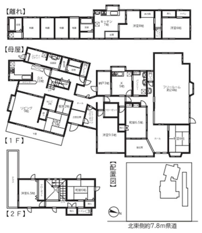 平家離れは2DK+物置4室 2世帯、3世帯住宅の大家族用 介護施設用に適します |