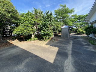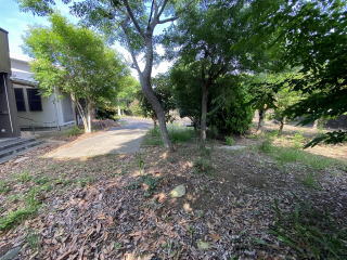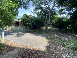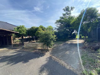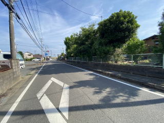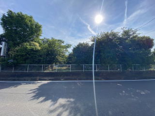 敷地514坪 東側県道に面した整形地 敷地周囲を樹木、フェンスで囲まれた大型敷地