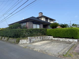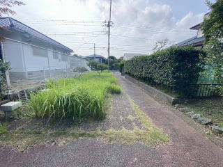敷地119坪 西側道路に面し南側にも歩道面した整形角地 駐車場2台分 生垣の庭