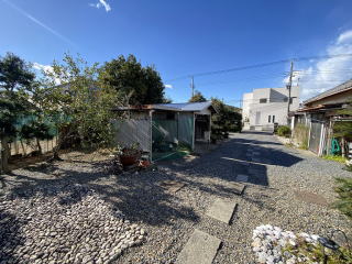 敷地入口側の砂利敷駐車場スペース |