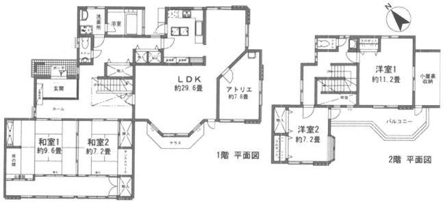 広い玄関ホール 広縁付和室続き間の大広間 約30帖LDK スロップシンク付7.8帖アトリエ |