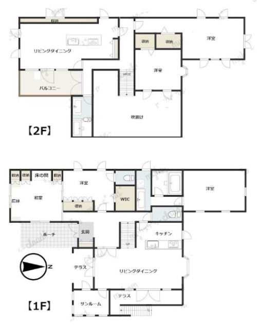建物は平成9年築 68坪3LDK+2LDK 2世帯住宅 吹抜のLDにサンルームとテラス付 |