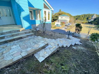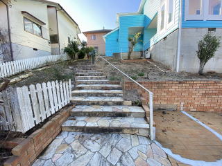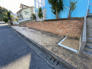 敷地146坪 東側道路に面し東傾斜の整形地 駐車場2台可 南側に階段アプローチと庭