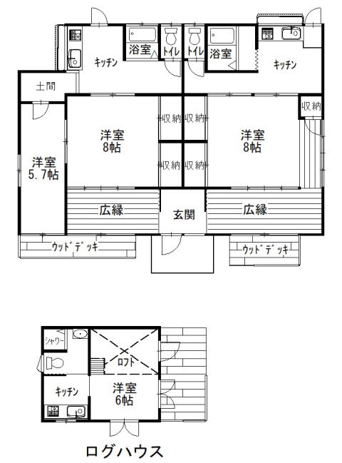 現在シェアハウスで利用中 離れに令和元年築 5坪1SK ログハウス オーナー利用中