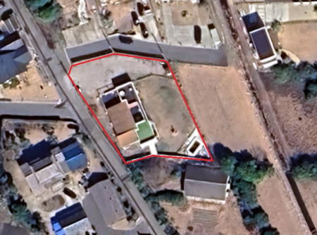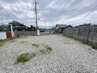 敷地352坪 西側、北側2方道路角地 北側に砂利敷き大型駐車場と東側に広々した庭