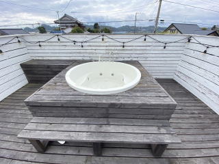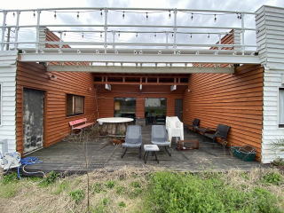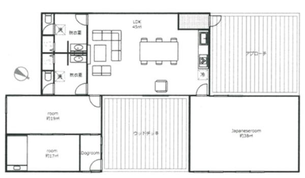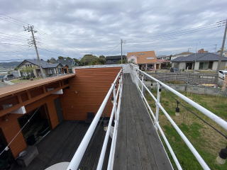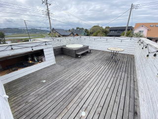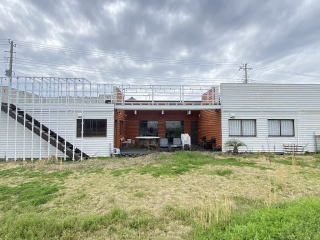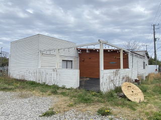 建物は平成29年築 44坪 コンテナ組み合わせた平家住宅 中央にテラスとルーフバルコニー付 |
