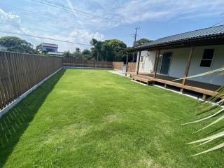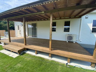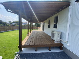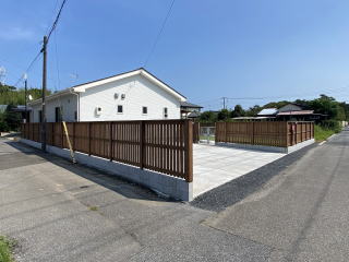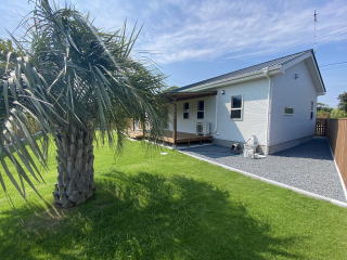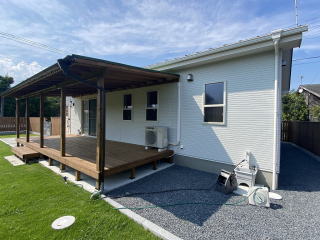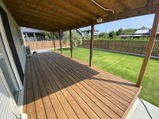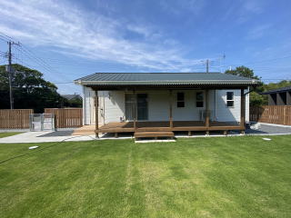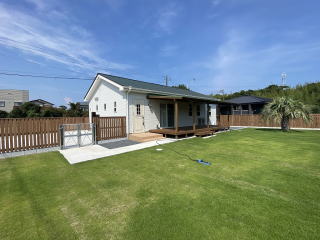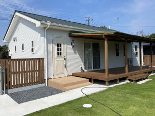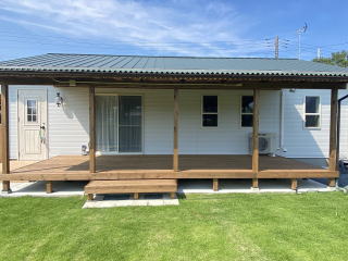 建物は新築木造平家住宅 26坪2LDK 約27帖LDK 大型ウッドデッキテラス付 |
