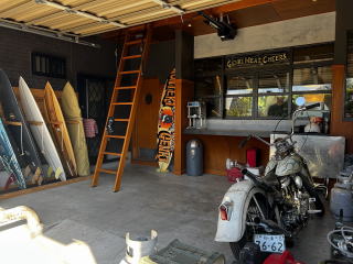 ガレージ内 カウンターの内部は飲食調理室 |