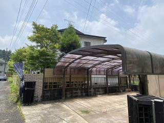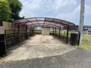 敷地98坪 東南側道路に面したゆとりの敷地 駐車場屋根付2台分 南側に広々明るい庭