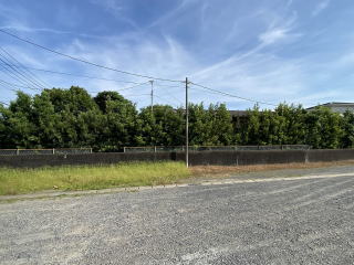 敷地514坪 東側県道に面した整形地 敷地周囲を樹木、フェンスで囲まれた大型敷地