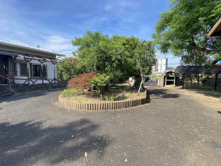 敷地進入路とロータリー式駐車場 東側から南側にかけて緑豊かな庭がとれいています