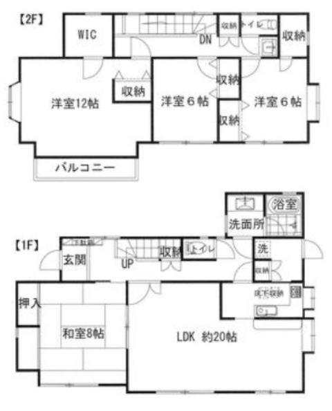建物平成7年築 約42坪4SLDK  20帖LDKと8帖和室続き間 2階洋室3部屋 全室南向き