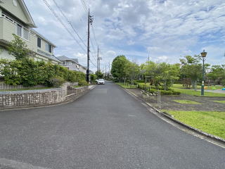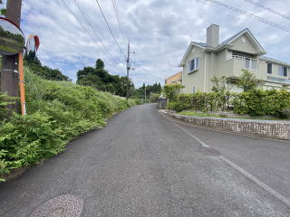 高台で日当り良好です   接道道路と周囲の街並み 北西側道路
