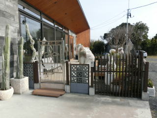 玄関脇には約6帖の石敷きのテラス 室内の壁は漆喰の吹き付け