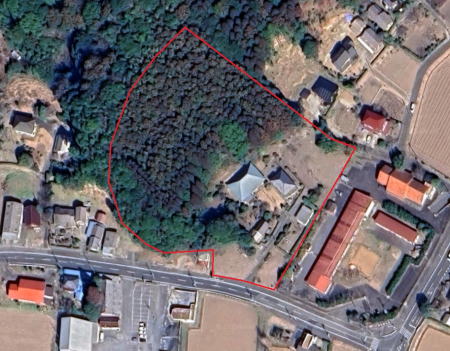 敷地3515坪 うち山林2242坪、畑645坪含みます 南側県道に面し緩やかな南傾斜地