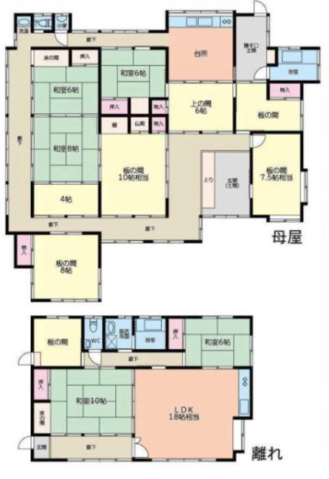建物は築100年以上の平家古民家 51坪9DK 離れ平成6年築 26坪2SLDK ガレージ付 |