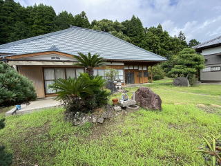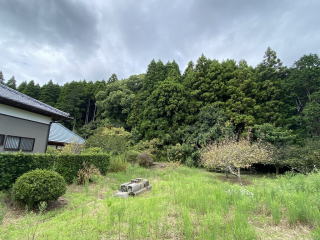 敷地入口南側と裏手北側に畑あり 西側には広い山林が広がります 母屋東側に庭