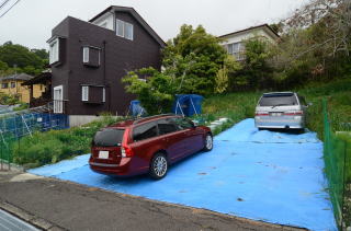 敷地75坪 南側道路に面した南傾斜地 駐車場2台分 南側の庭には家庭菜園